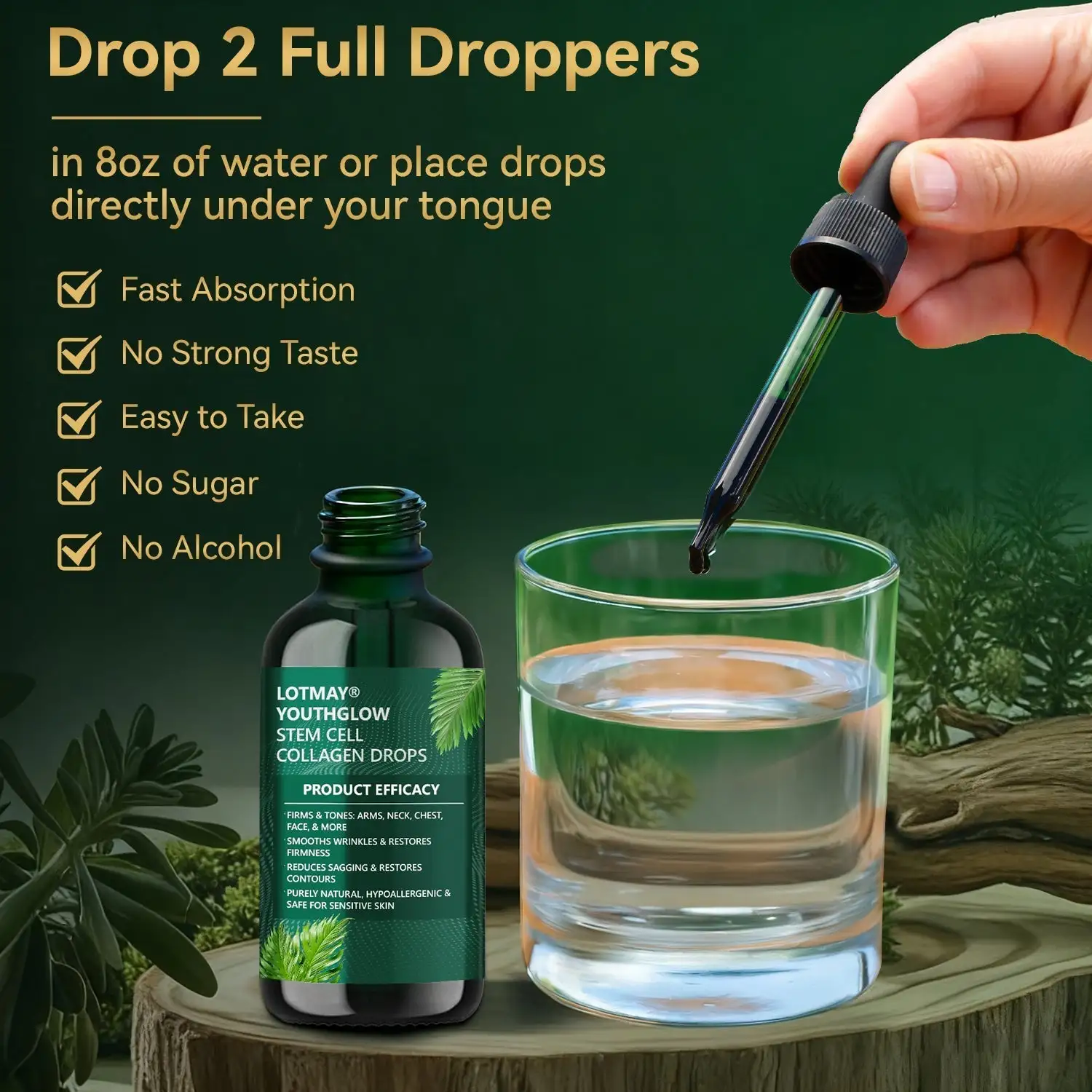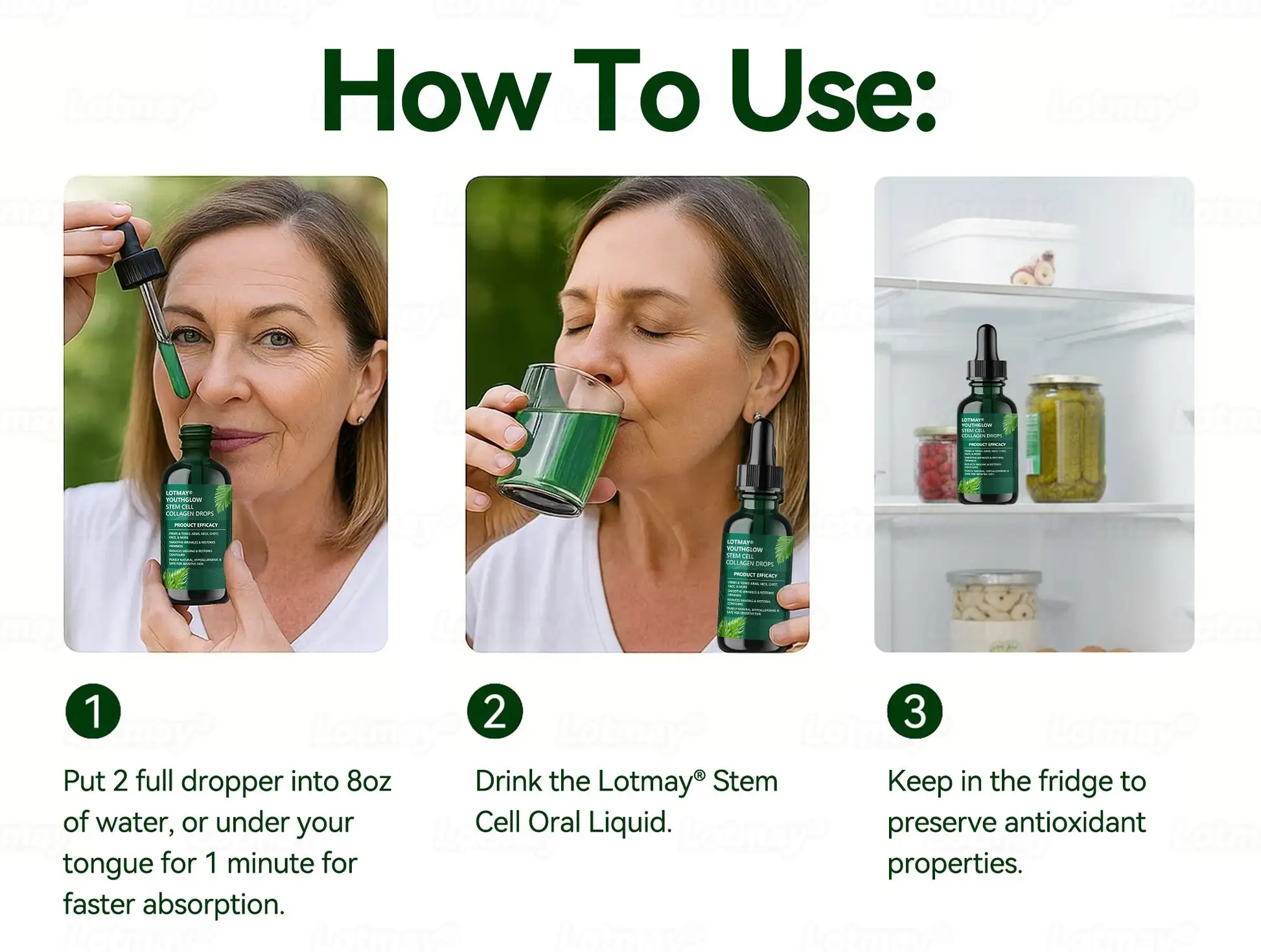 Use 2 Full Droppers โ within 30 days, youโll notice significantly tighter skin and healthier hair and nails.