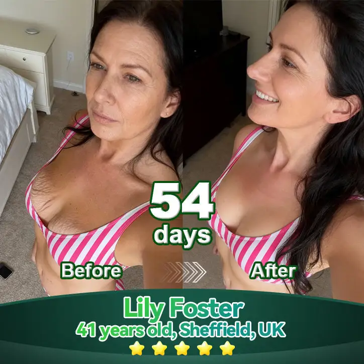 I drink it twice a day โ just mix it into water โ and every time, I feel this gentle warmth all over my body. Iโm not kidding, I notice changes almost every other day! I started on August 25th, kept doing it twice a day, plus a bit of sunscreen โ thatโs literally all. Itโs so simple and works so fast! My dark spots, rosacea, wrinklesโฆ even my hair looks so much better now. This is honestly a full-body booster, and I donโt think I can go a day without it anymore. I feel absolutely amazing, and I 100% recommend it!ย ย -Mia Hughes, Manchester